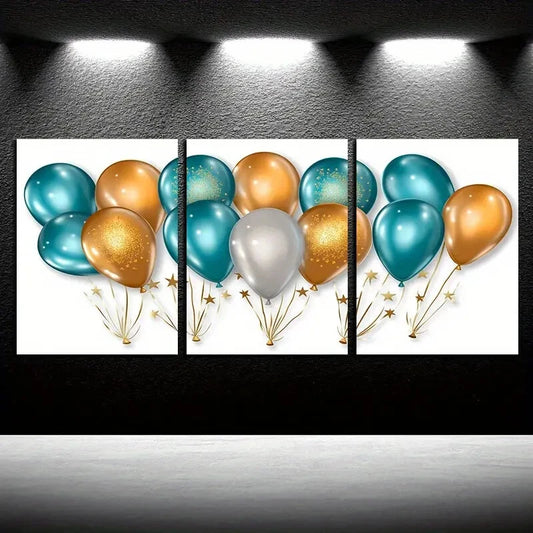3pcs Vibrant Decorative Balloon Design Metal Print Ready to Hang Art