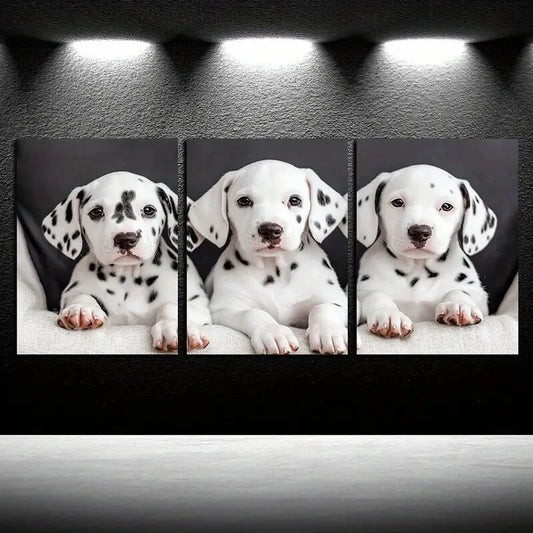 3pcs Dog in the Hall Illustration Metal Print Ready to Hang Art