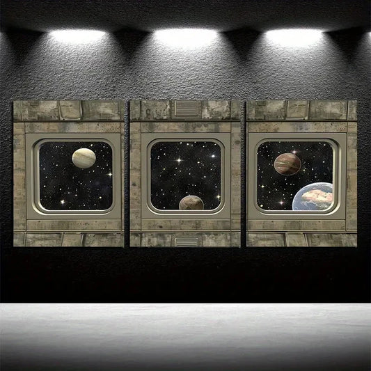 3pcs Dark Sci-fi Style Black Metal Starship Deck Metal Print Ready to Hang Art