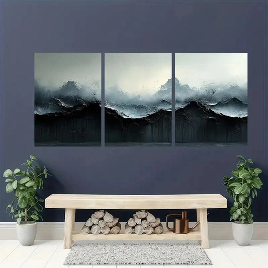 3pcs Black and White Abstract Texture Painting Metal Print Ready to Hang Art