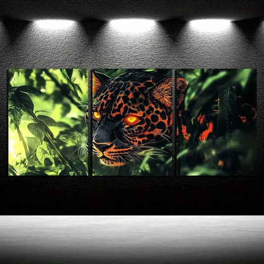 3pcs Black Panther Tropical Rainforest Jungle Metal Print Ready to Hang Art