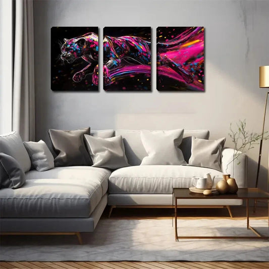 3pcs Vibrant Black Panther Design Perfect Wall Art Set Canvas Framed 40x60cm - High Quality Print 100% Australian Made Wall Canvas Ready to Hang