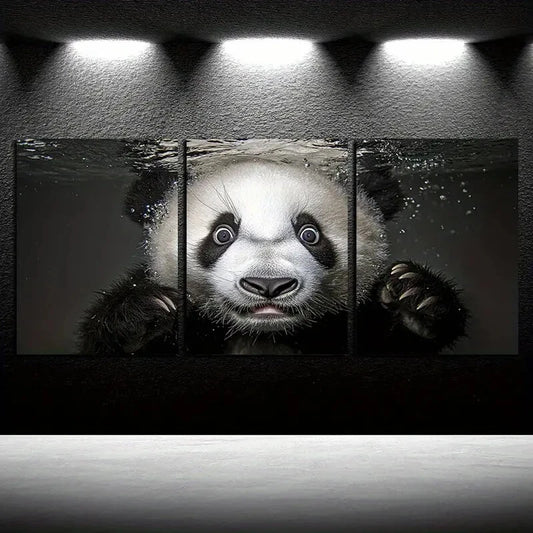 3pcs Swimming Panda Modern Design Metal Print Ready to Hang Art