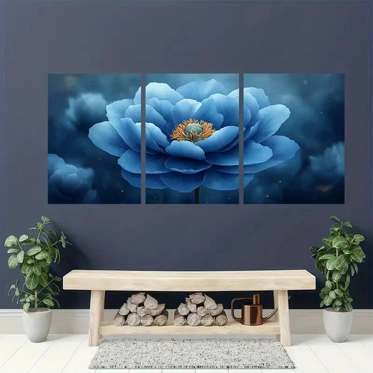 3pcs Light Blue Peony Flower Painting Metal Print Ready to Hang Art