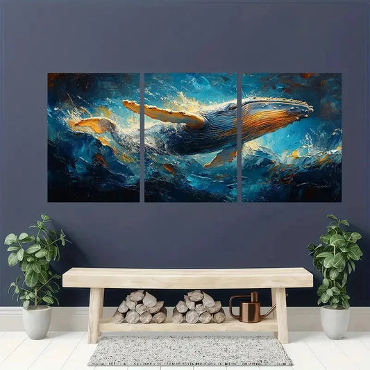 3pcs Whale Painting Breaching Humpback Whale Metal Print Ready to Hang Art