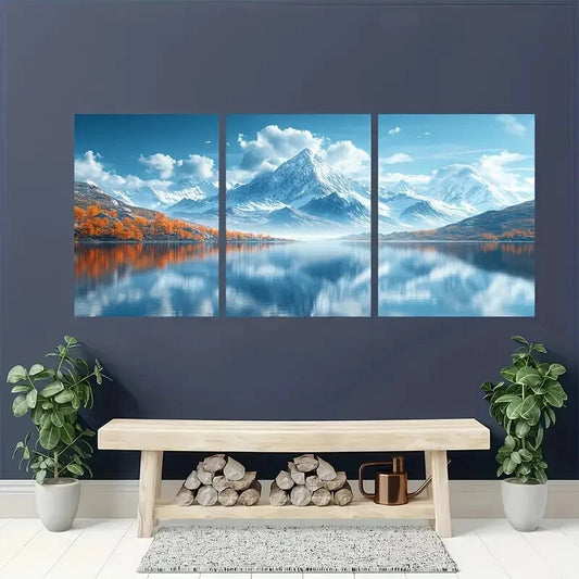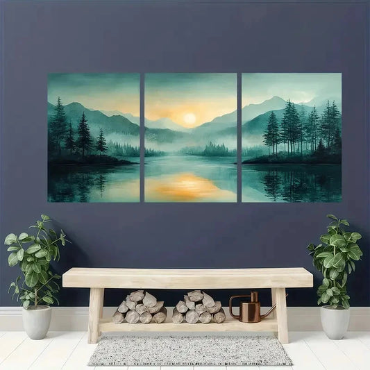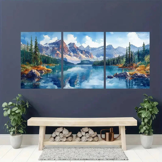 3pcs Featuring Minimalist Mountains And a Lake Metal Print Ready to Hang Art