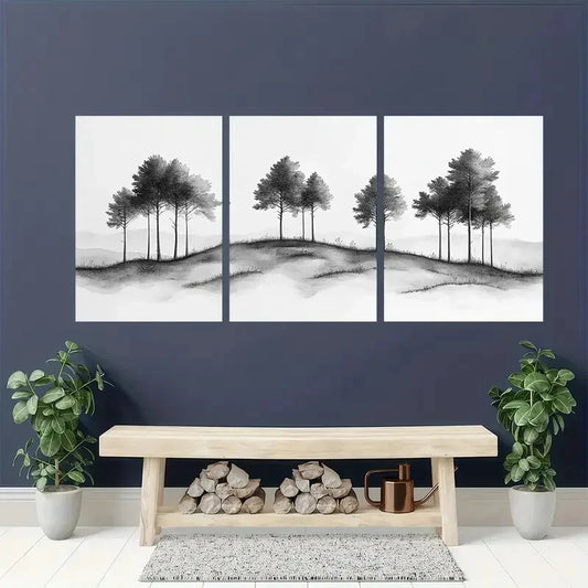 3pcs Minimalist Modern Abstract Misty Forest Metal Print Ready to Hang Art