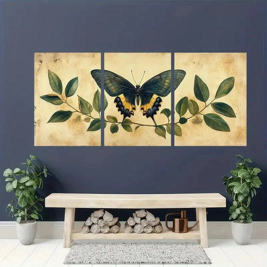 3pcs Nature Decor Vintage Botanical & Butterfly Metal Print Ready to Hang Art