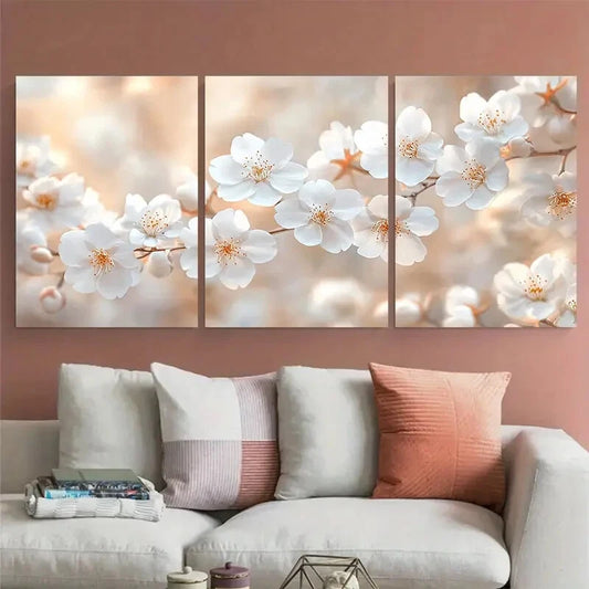 3pcs Ethereal White Cherry Blossom Floral Design Metal Print Ready to Hang Art