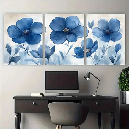 3pcs Elegant Blue Botanical Illustration Metal Print Ready to Hang Art