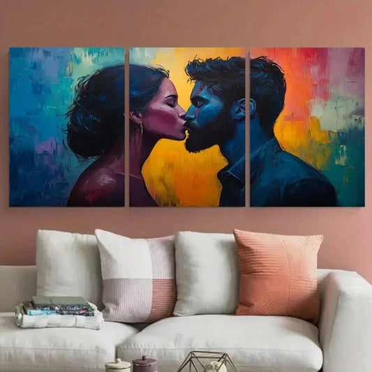 3pcs Kissing in Vibrant Background Metal Print Ready to Hang Art