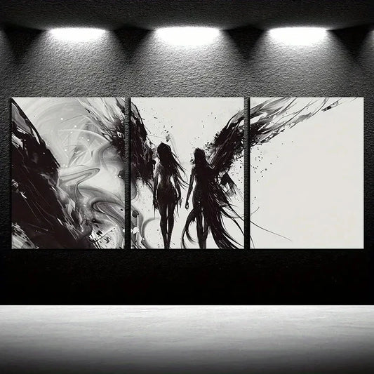 3pcs Modern Black and White Women Abstract Design Metal Print Ready to Hang Art