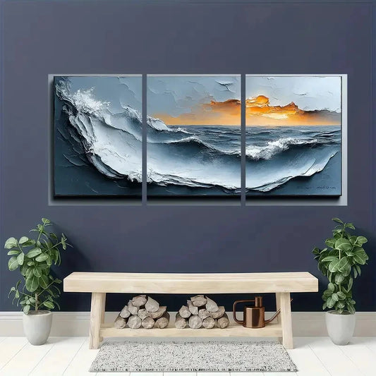 3pcs Modern Surf Ocean Wave Decoration Wall Art Set Canvas Framed 40x60cm - High Quality Print 100% Australian Made Wall Canvas Ready to Hang