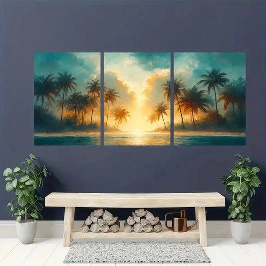 3pcs Tropical Palm Tree Watercolor Art Prints Metal Print Ready to Hang Art