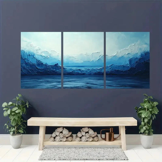 3pcs Abstract Blue & White Minimalist Metal Print Ready to Hang Art