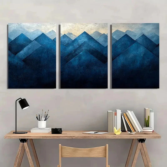 3pcs Abstract Blue & Black Geometric Design Metal Print Ready to Hang Art