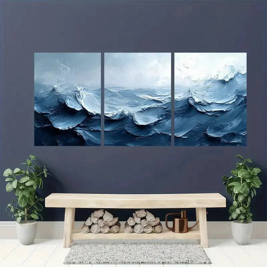 3pcs Vibrant Ocean Waves & Sandy Shore Scene Metal Print Ready to Hang Art