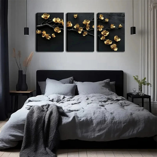 3pcs Golden Lines Radiating Outwards Perfect Wall Art Set Canvas Framed 40x60cm - High Quality Print 100% Australian Made Wall Canvas Ready to Hang