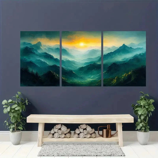 3pcs Abstract Green Mountain Oil Painting Metal Print Ready to Hang Art