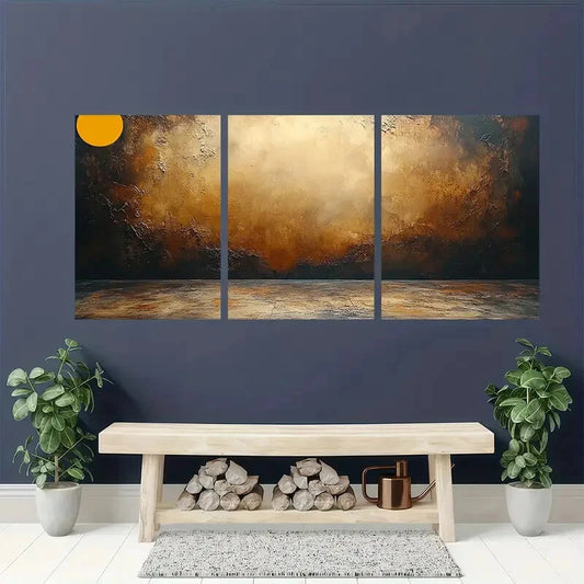3pcs Abstract Painting Medieval Brown Oil Painting Metal Print Ready to Hang Art