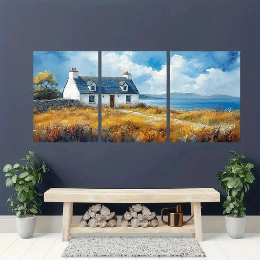 3pcs Scottish Cottage Painting Isle Pf Sky Metal Print Ready to Hang Art