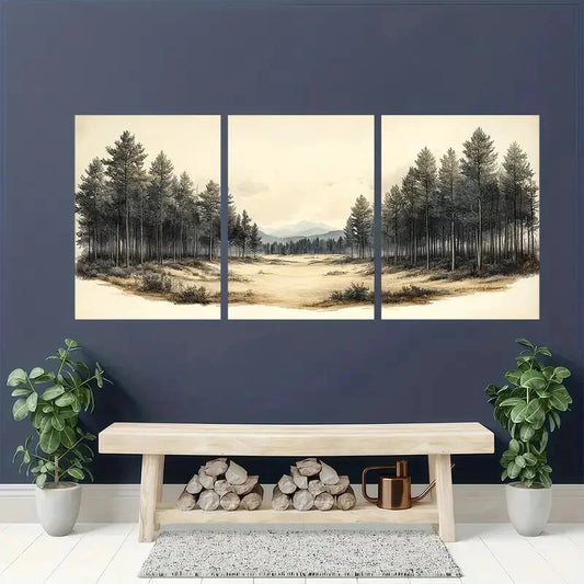 3pcs Forest Landscape Panoramic Print Neutral Metal Print Ready to Hang Art