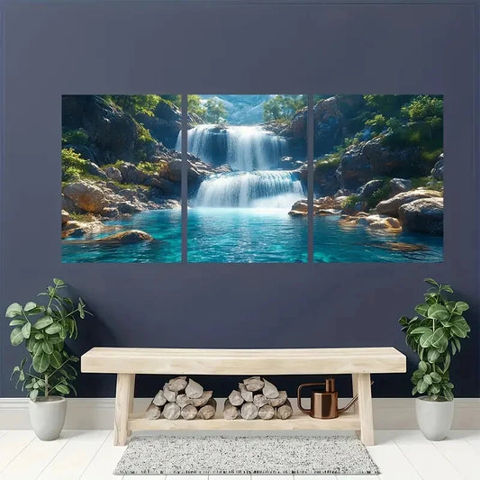 3pcs Waterfall Painting Print Waterfall Art Nature Metal Print Ready to Hang Art