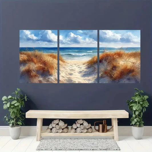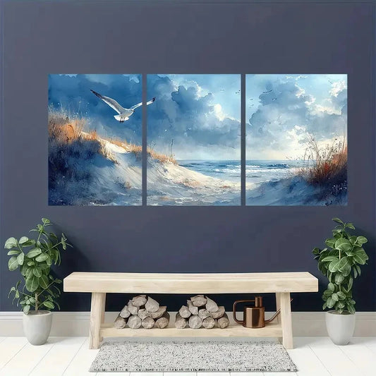 3pcs Sand Dunes and Seagulls Watercolor Beach Land Metal Print Ready to Hang Art
