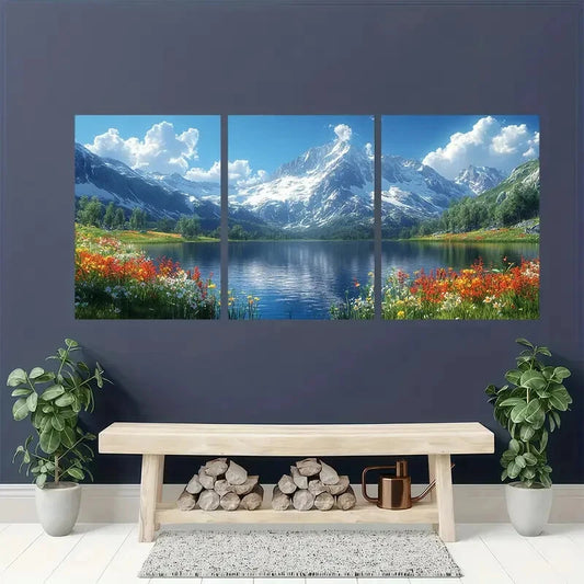 3pcs Nature-Inspired Vibrant Mountain Lake Art Metal Print Ready to Hang Art