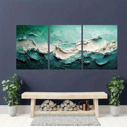3pcs Ocean Waves Art Original Seascape Painting Metal Print Ready to Hang Art