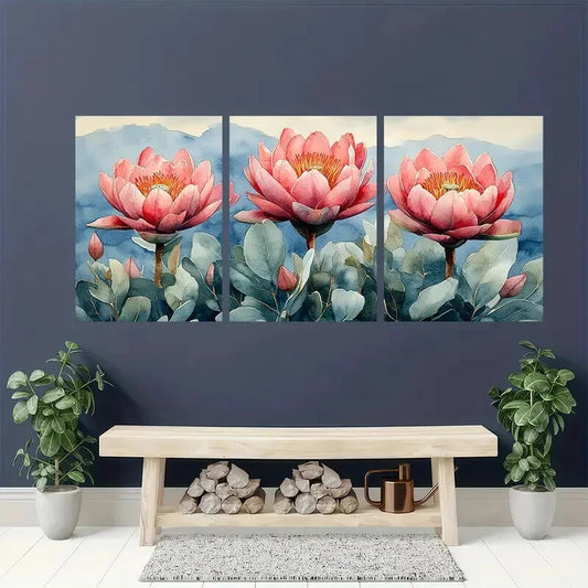 3pcs Pink Proteas on Soft Blue-Green Background Metal Print Ready to Hang Art