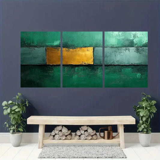 3pcs Green Minimalist Abstract Painting Metal Print Ready to Hang Art