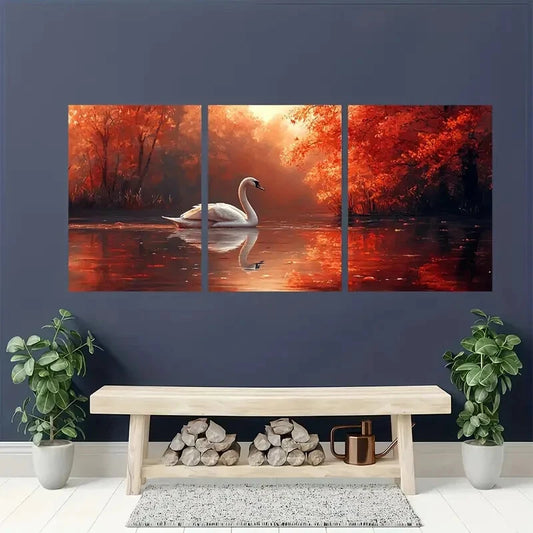 3pcs Swan Painting Print Animal Art Nature Metal Print Ready to Hang Art