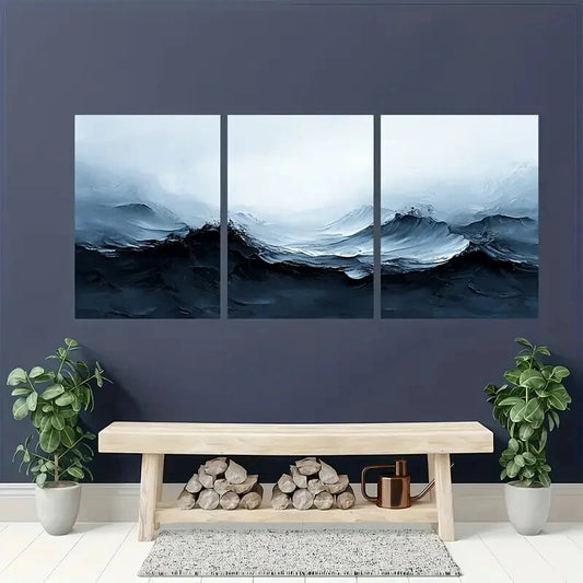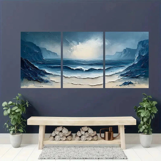 3pcs Coastal Landscape Painting Ocean Abstract Metal Print Ready to Hang Art