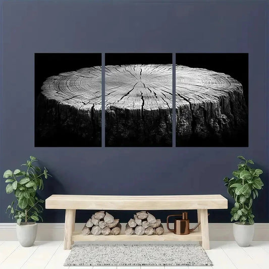 3pcs Black and White Art Wood Tree Ring Metal Print Ready to Hang Art