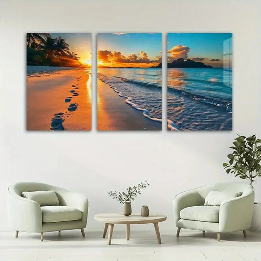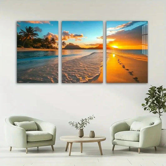 3pcs Tropical Beach Sunset Beautiful Scenery Metal Print Ready to Hang Art