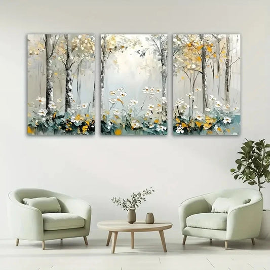 3pcs Abstract Forest White Flowers Metal Print Ready to Hang Art