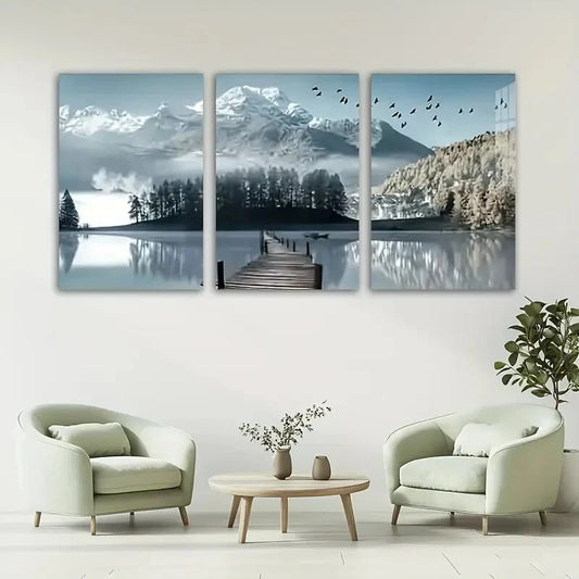 3pcs Snowy Mountains Jungle & Lake Scenery Metal Print Ready to Hang Art