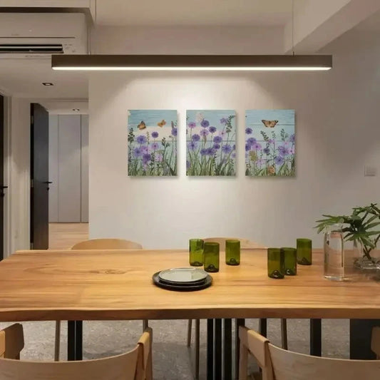 3pcs Rustic Vibrant Wildflowers and Butterflies Metal Print Ready to Hang Art