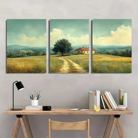 3pcs Vintage Loose Watercolor Pastoral Scene Metal Print Ready to Hang Art