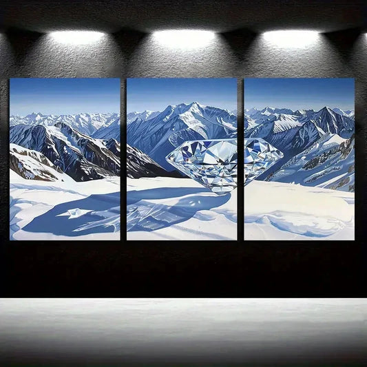 3pcs Snow Mountain Oil Painting Metal Print Ready to Hang Art