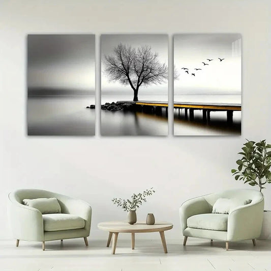 3pcs Black and White Tree Textured Metal Print Ready to Hang Art