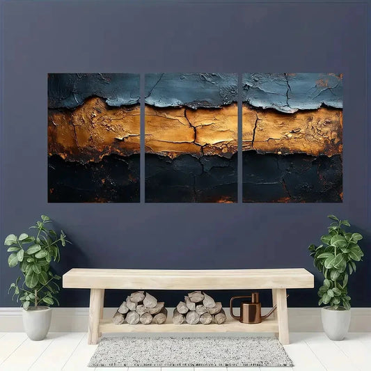 3pcs Modern Abstract Black & Golden Textured Metal Print Ready to Hang Art
