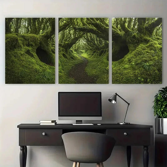 3pcs Green Botanic Mystical Nature Forest Metal Print Ready to Hang Art