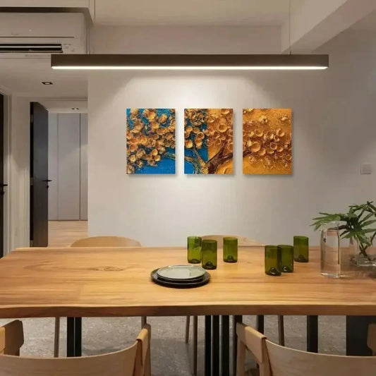 3pcs Blue Golden And White Paintings Metal Print Ready to Hang Art
