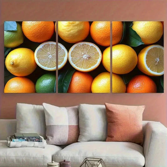 3pcs Vibrant Citrus Fruits Lemons Limes Oranges Metal Print Ready to Hang Art