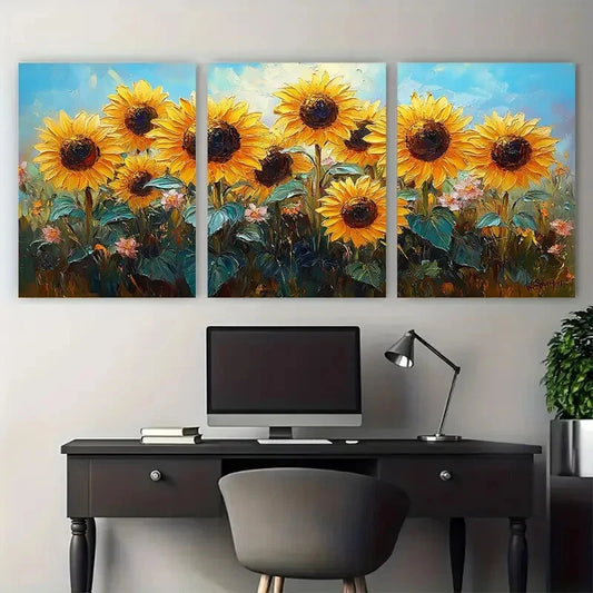 3pcs Sunflowers Floral Still Life Illustration Metal Print Ready to Hang Art