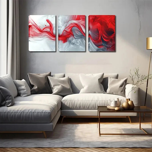 3pcs Modern Abstract Red White Flowers Perfect Wall Art Set Canvas Framed 40x60cm - High Quality Print 100% Australian Made Wall Canvas Ready to Hang