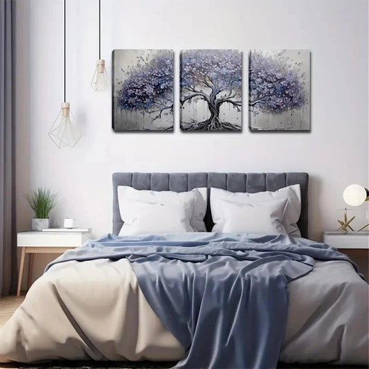 3pcs Blue-Purple Tree Design Abstract Perfect Wall Art Set Canvas Framed 40x60cm - High Quality Print 100% Australian Made Wall Canvas Ready to Hang