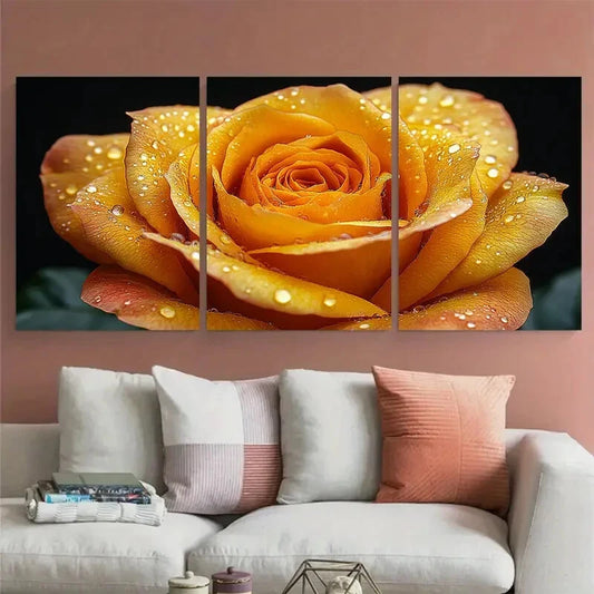 3pcs Vibrant Yellow Rose Close Up Botanical Floral Metal Print Ready to Hang Art